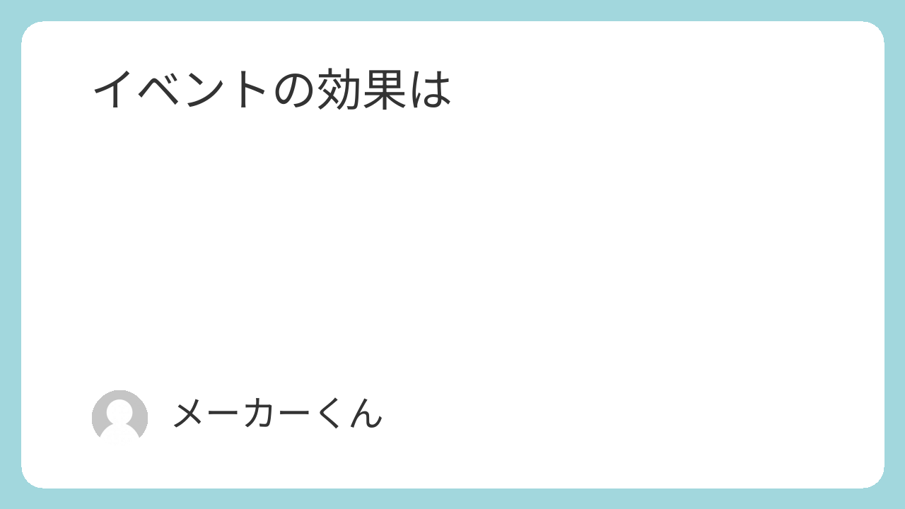 イベントの効果は 集客 X Facebook はてブ LINE コピー 2025.09.072025.10.28 イベントを窓口としたアポイント誘導率についてしりたい。実施した場合、そこからいくらの引き合いに発展するのか。医局でひたすら待つアポ取り営業より高いのであれば、チラシをまきまくる活動が有効である。