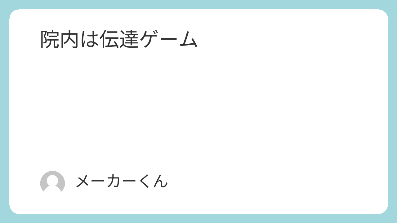 一つの案件を通そうと思うとなれば、とにかく色々な人の了承がいる。申請時には、販売代理店から始まり、執刀医、その上司や教授、手術室師長、用度課はマスト。いざ運営になると、SPD、手術室リーダー、スタッフ、MEさんとかなりの人数が出てくる。とにかく全員に理解してもらわないといけない。書類を回すとなればほぼ伝言ゲームの世界となり、必ず一度はどこかで消えてしまう。すべてのステークホルダーに対しこまめに接していくことが必要となる。